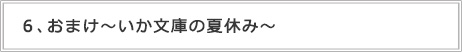 「田中くんが教科書でマンガ隠して読んでます!」(漫画)、「放課後、体育館の裏に来て下さい・・・」(恋愛)、「あ、この人、また同じ本借りてる・・・」(図書館)など、【学校】での出来事からイメージする本を、本の学校スタッフの皆さん、地元の学生の皆さん、いか文庫、そしてお客さまとも一緒に選びました!