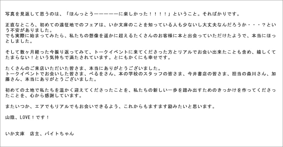 今年20周年を迎えリニューアルした鳥取県米子市の本屋さん「本の学校今井ブックセンター」さんと、